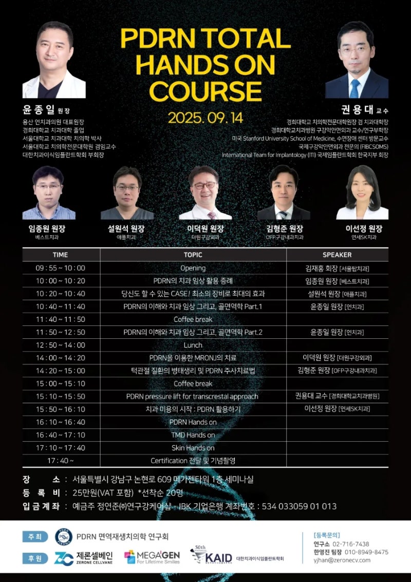 #Á¦·Ð¼¿º£ÀÎ ¼¼¹Ì³ª¿¡¼´Â ´Ù¾çÇÑ Ä¡°ú ºÐ¾ß Àü¹®°¡µéÀÌ ¿¬ÀÚ·Î ³ª¼ PDRNÀÇ È°¿ë¹ýÀ» ½Éµµ ÀÖ°Ô ´Ù·ê ¿¹Á¤ÀÌ´Ù.