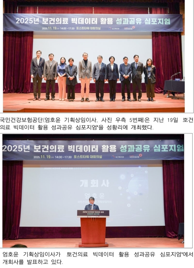 [°Ç°º¸ÇèÀú³Î] ±¹¹Î°Ç°º¸Çè°ø´Ü(ÀÌ»çÀå ¤·¤·)ÀÌ Áö³ 11¿ù 19ÀÏ ¼¿ï Æ÷½ºÆ®Å¸¿ö¿¡¼ ¡¸2025³â º¸°ÇÀÇ·á ºòµ¥ÀÌÅÍ È°¿ë ¼º°ú°øÀ¯ ½ÉÆ÷Áö¾ö¡¹À» °³ÃÖÇß´Ù.